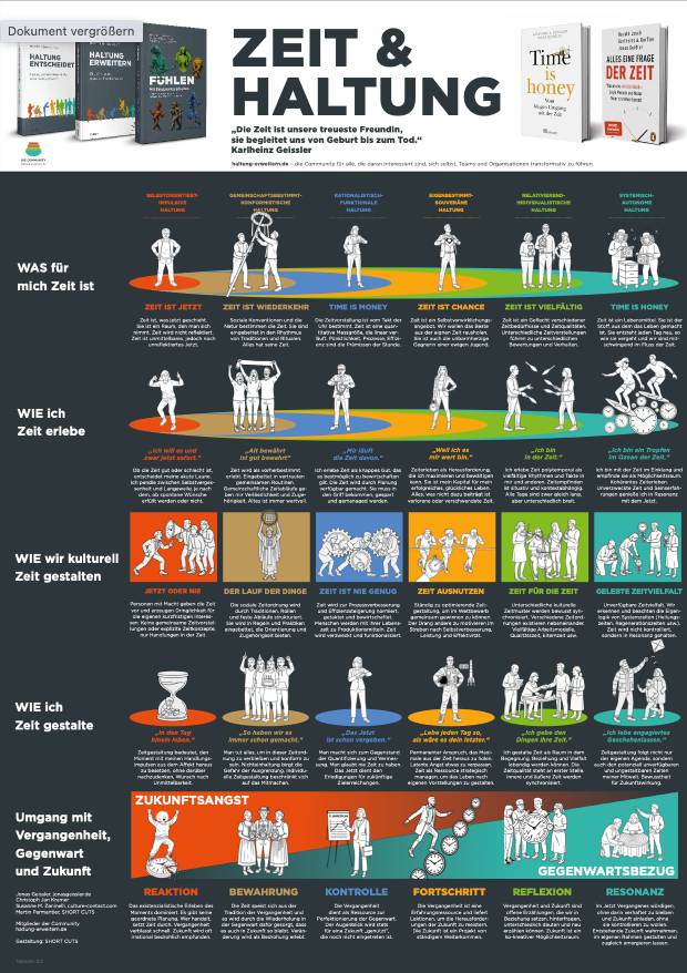 Wir haben meine Zeitforschungen und das Haltungs-Modell zusammen gebracht und in Form eines Posters visualisiert.