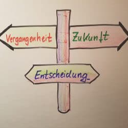 Wenn die aktuellen organisationalen Einredungen der gewöhnlich besser informierten Kreise ergeben, dass dem nicht so gewesen sein könnte, ist entweder der Zukunftsentwurf zum Scheitern verurteilt (oder er hat es jedenfalls sehr schwer) oder es steht eine neue Bewertung der Vergangenheit und deren Überlieferungen und Worte an. Wenn daraus geteilte Stimmigkeiten in der Organisation entstehen, dann wird das was mit der Schließung der Zukunft im Sinne der Entscheidung. Wenn sich die Vergangenheit nicht öffnen (lassen) will, dann bleibt’s wohl doch bei einer offenen Zukunft. Und es muss ein anderer Sinn für und in der Entscheidung gesucht werden. Das – Sie hatten es geahnt – braucht seine Zeit. Deshalb ist Veränderung so ein (zeit-) aufwändiges Gewerk. Und ihr Gelingen so unwahrscheinlich. Obwohl der Lösung die Geschichte des Problems egal ist (Systemiker-Spruch ;-). Oder doch nicht so ganz?