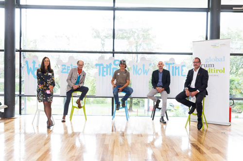 Christian Girardi (Gründer des Global Forum Südtirol), Jonas Geissler, Simon Gietl, Michil Costa, Dorotea Mader
